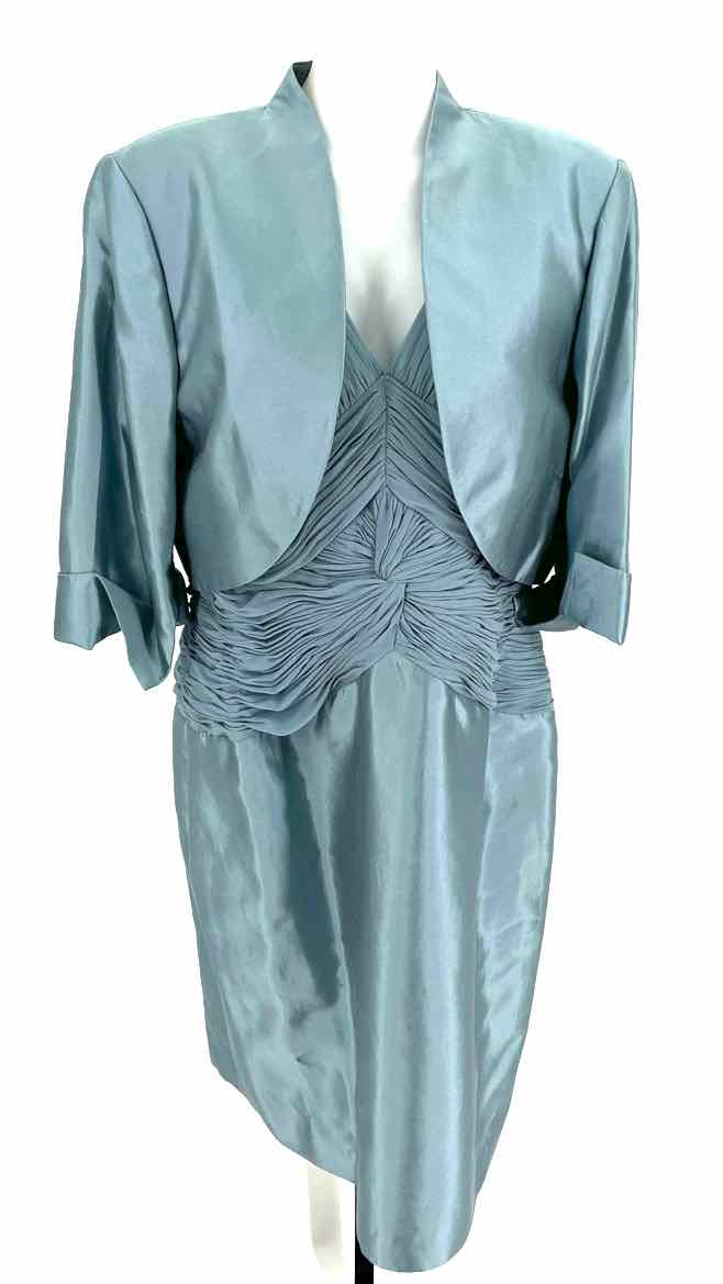 A.P.SLEEVELESS SHEATH DRESS W/RUCHED BODICE DETAIL AND SATIN FINISH,MATCHING CROPPED JACKET