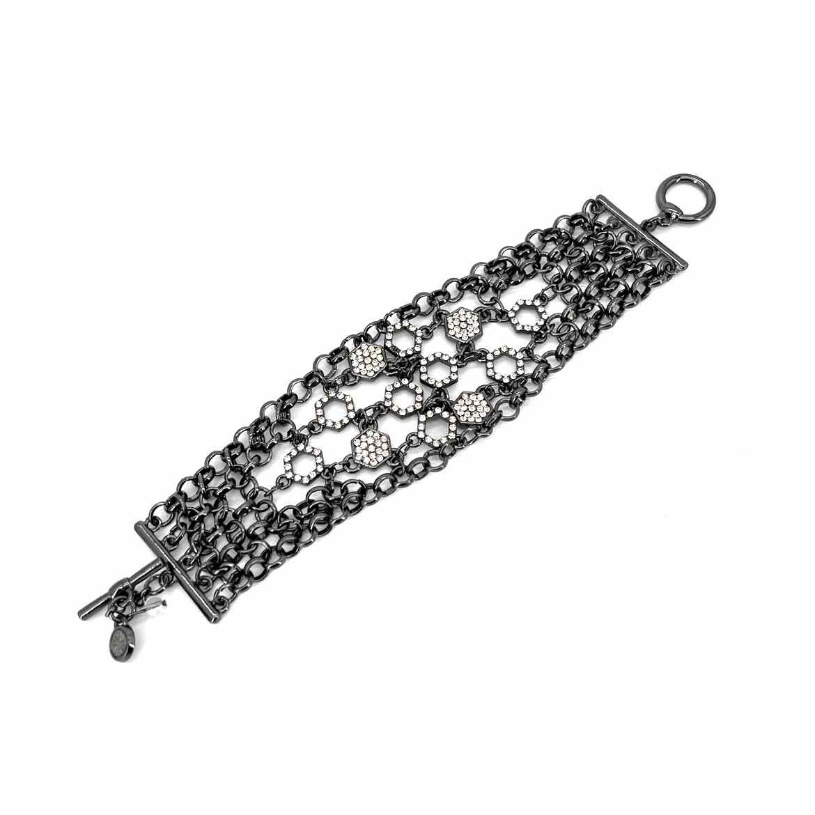 BLACK CHAIN TOGGLE BRACELET W/RHINESTONES