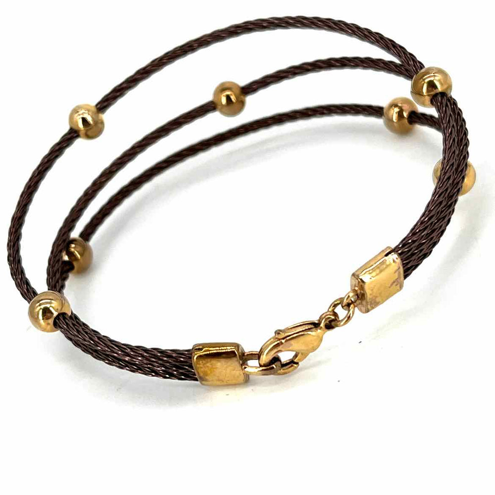 BRONZE TRIPLE WIRE BRACELET W/GOLD BEADS