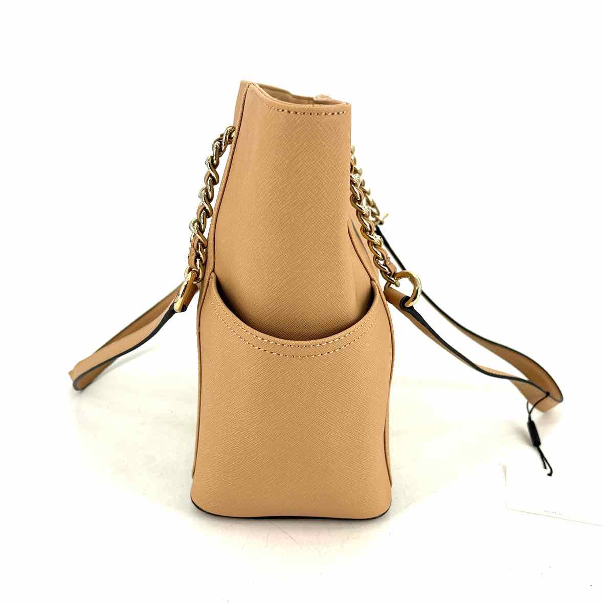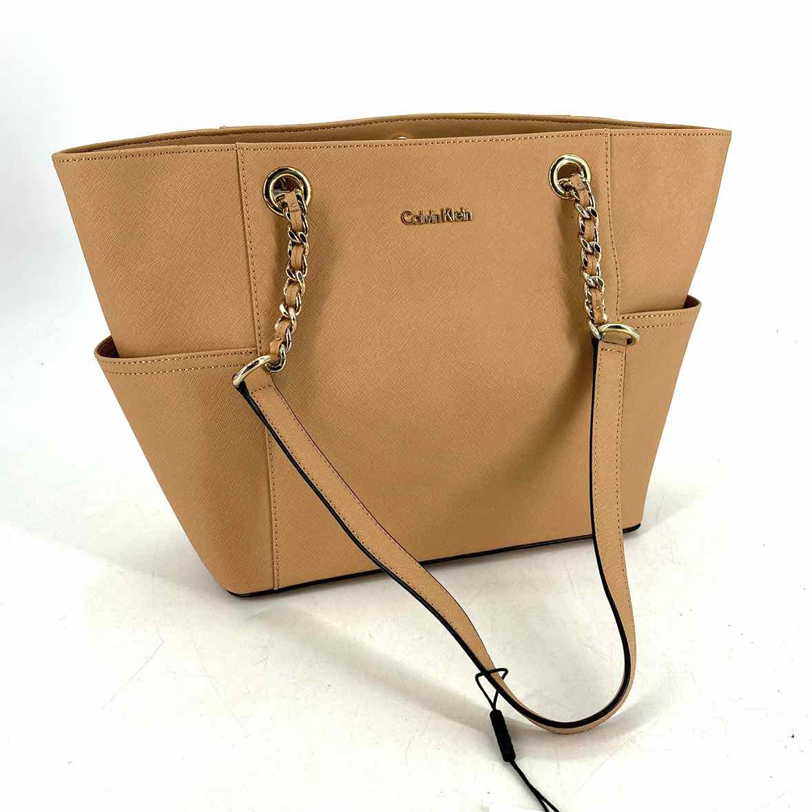 CALVIN KLEIN TAN LEATHER SHOULDER BAG W/CHAIN DETAIL