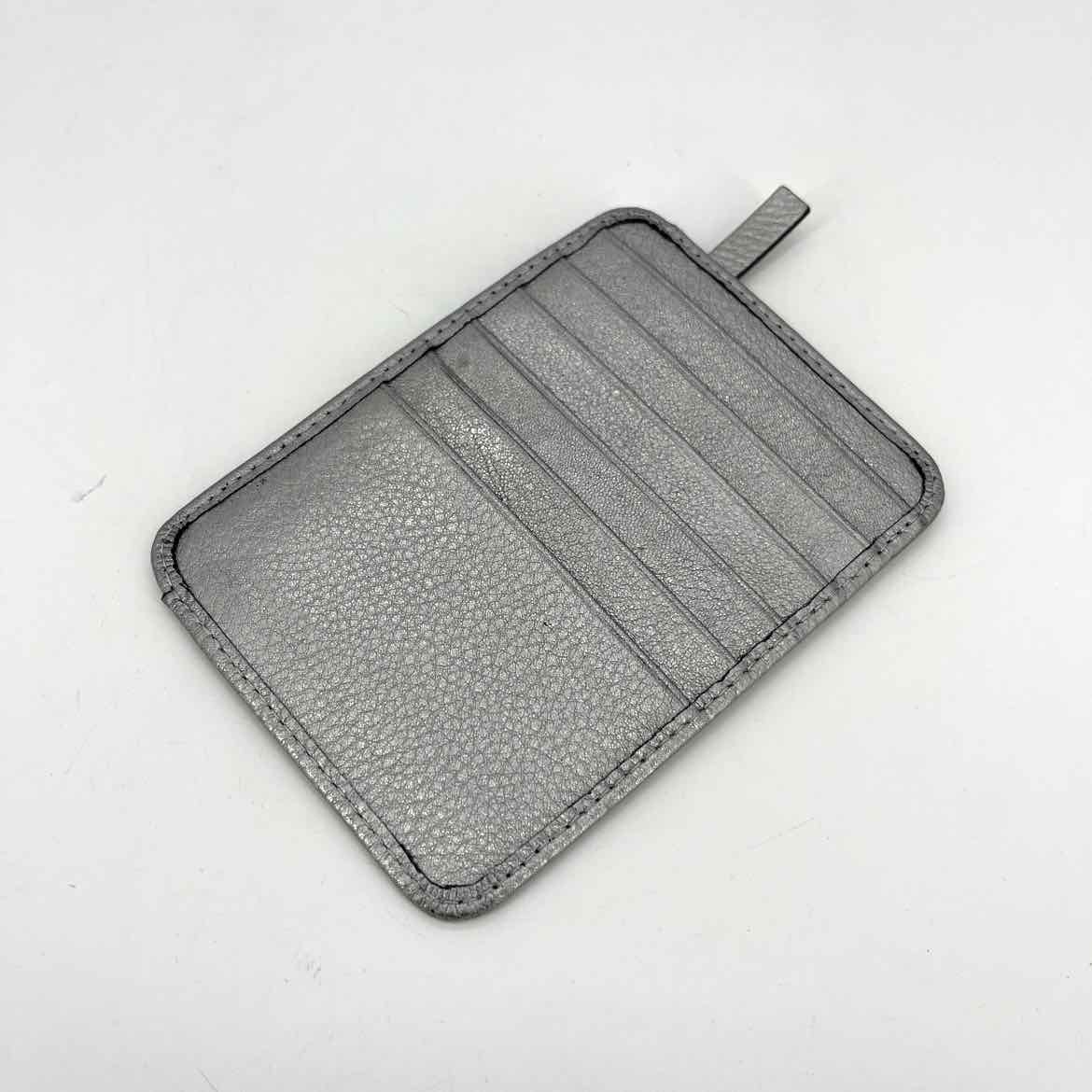 SILVER LEATHER CREDIT CARD WALLET W/ZIPPER POUCH